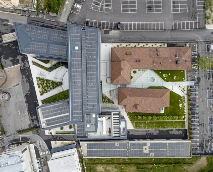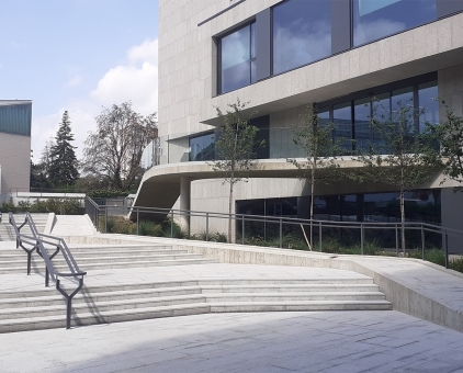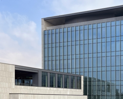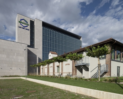 The project fulfills the request to enhance the Bracco management sector through a systematic set of devolpments aimed at profoundly reinventing the architectural aspect, the way in which the buildings are used and the efficient management of consumption. From a strategic point of view, the project tends to favor a relationship betwen dynamic and contemporary use of work spaces through the redefinition of a functional mix, spread across all buildings, capable of making the use of spaces more articulated. Both farmhouses located to the east of the new Headquarters host collective functions (cafeteria and personal services). These functions allow to exploit the essence of the historic buildings and make the surrounding open spaces an integral part of the recreational activities. The design identifies the outdoor pedestrian areas as a qualitative and comfort aspect dedicated to all users of the complex. The approach to the building takes place through a connective tissue which descends from the entrance area towards the new reception in the basement floor and then reconnects to the collective spaces around the farmhouses on the other side. The new pathway thus becomes the trait d'union of the new Bracco Campus, undertaking the role of a quality space among the buildings aimed at facilitating movement and relationships between people.